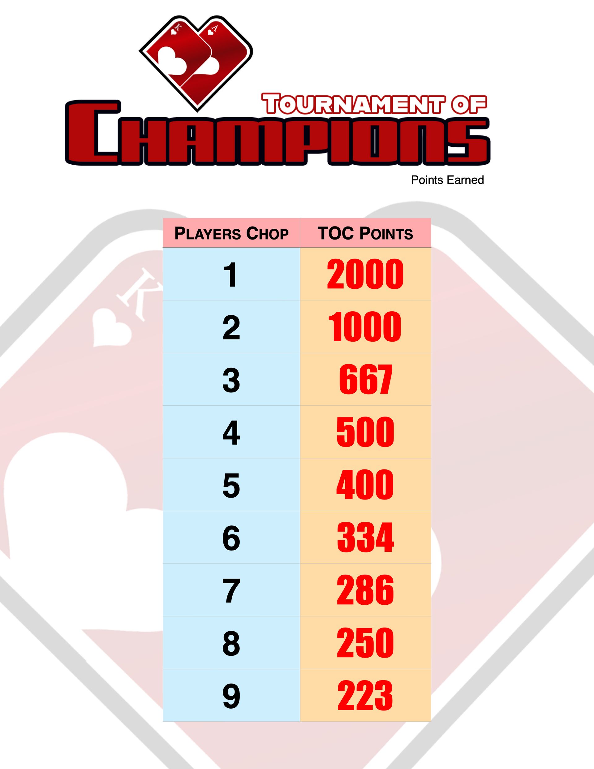 The 2026 Play Poker Chicago Tournament of Champions is a points-based competition scheduled for January 9, 2026 at the Joliet American Legion in Joliet. You can accumulate points throughout 2026 by winning or chopping events, according to the point list provided below.